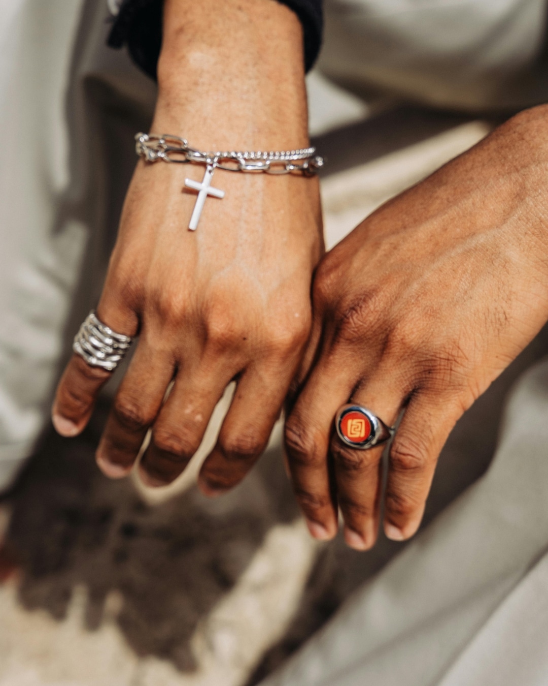 Consejo práctico: Si eliges una pieza robusta como un anillo grueso, intenta equilibrar con accesorios más sutiles como una pulsera fina.