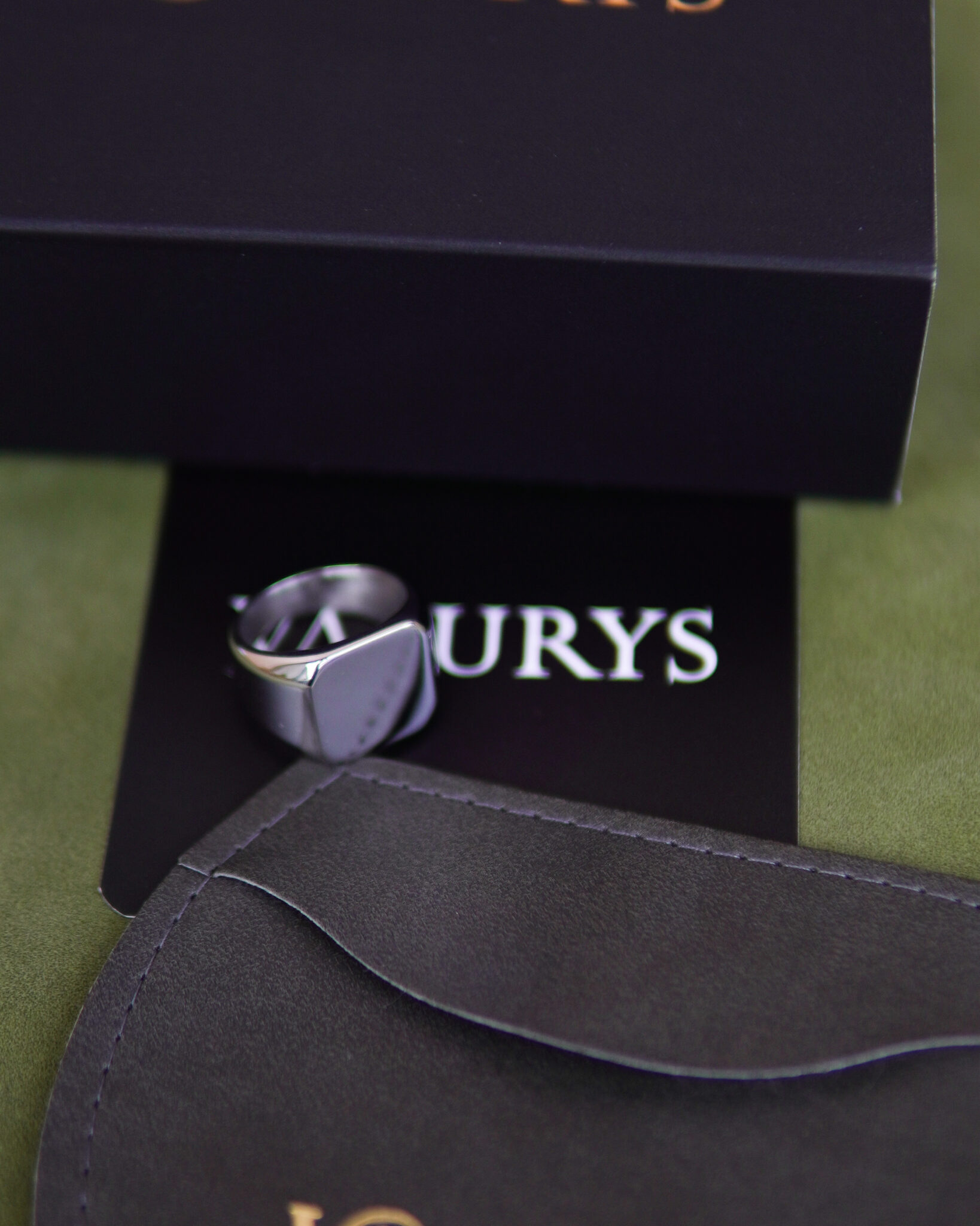 Detalles Estéticos: El anillo se caracteriza por una forma cuadrada bien definida, un acabado gris/ y una superficie lisa.  Los bordes están cuidadosamente delineados para mantener una apariencia limpia y sofisticada.